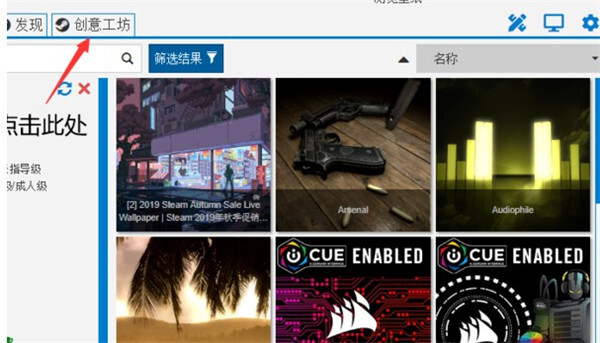 1、第一步,我们要打开wallpaper engine,进入主页面后,在左上角找到创意工坊,点击进入。