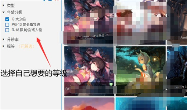 4、最后我们可以在分级中点击选择我们想要的壁纸即可,如图所示。