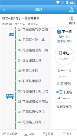 2、输入公交线路或公交站点名称,就能精准告知你所要乘坐的任意一辆车的当前位置、发车时间以及到站信息。数据精准可靠,值得信赖。