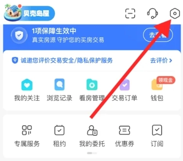 1、打开贝壳找房App我的页面,点击【设置】进入