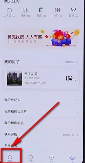 1、开启贝壳找房应用,轻点界面中的“我”选项。