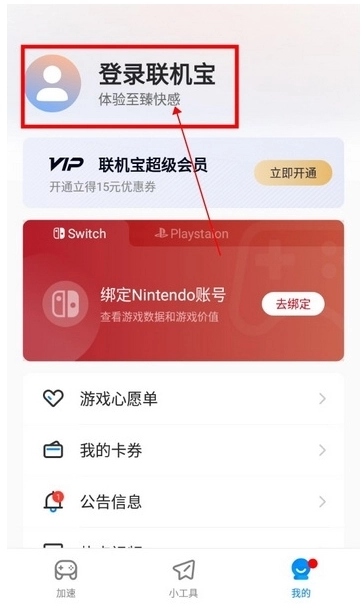 2.在跳转的页面中点击上方的【登录联机宝】字样。