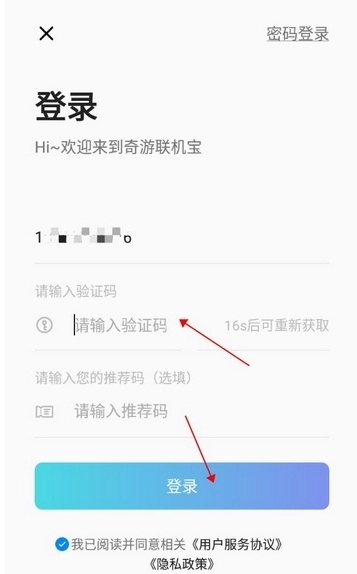 4.最后将收到的验证码填入到对应位置中,点击【登录】按钮就可以顺利登录到软件上了,推荐码可填可不填。