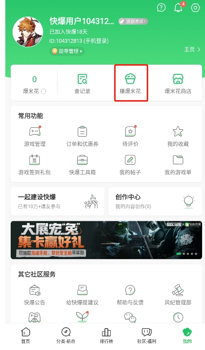 1. 开启【好游快爆】,进入【我的 - 赚爆米花】页面。 2. 接着点击下方的【种草好友】选项,输入好友的【种草码】就能完成操作。