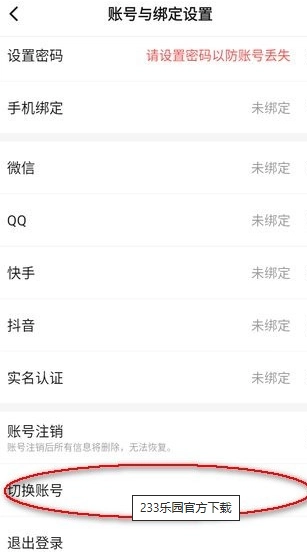 3、来到“账号与绑定设置”界面后,下拉找到“切换账号”点击