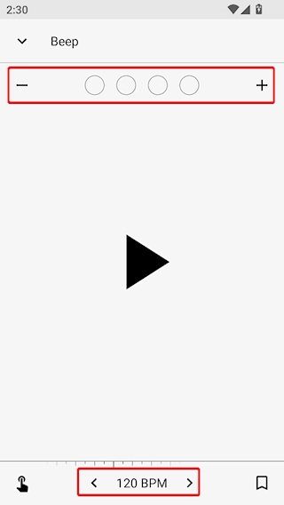 3.在上方设置拍号,在下方设置拍速,点击中间的按钮启动节拍器