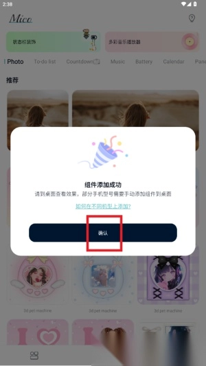3)在锁屏界面长按编辑小组件,选择米克锁屏,选择适合你的大小类型的小组件,点击完成