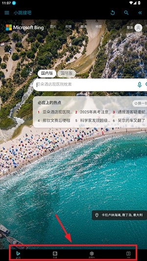 2、进入首页后,可以点击下方,切换不同的搜索引擎