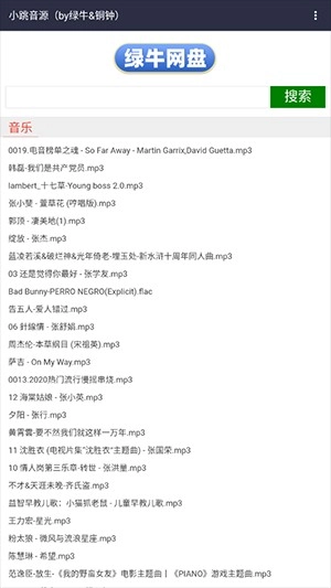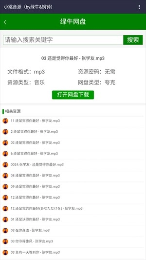 1、打开小跳音源,在其中查找自己感兴趣歌曲的网盘地址。