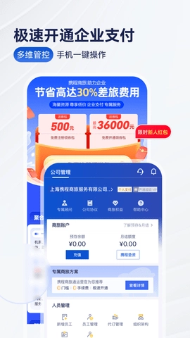 2、多种支付方式,携程企业商旅支持公司账户和个人账户支付。通过月结预存,实现企业员工免预付款、免报销、免发票,透明合规、便捷高效。