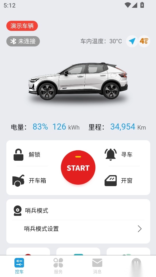 点击控车页面可以让大家对自己的车辆进行远程控制,是非常方便的。