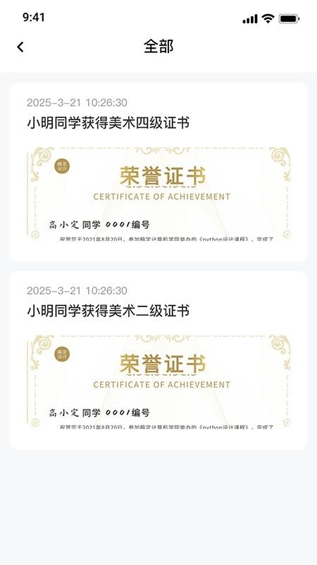 学生也可以对自己获取的证书来进行实时管理,轻松管理各类证书和勋章,随时查询考级。