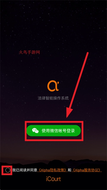 进入登录界面后,勾选我已阅读并同意《Alpha隐私政策》和《Alpha服务协议》,点击使用微信账号登录即可