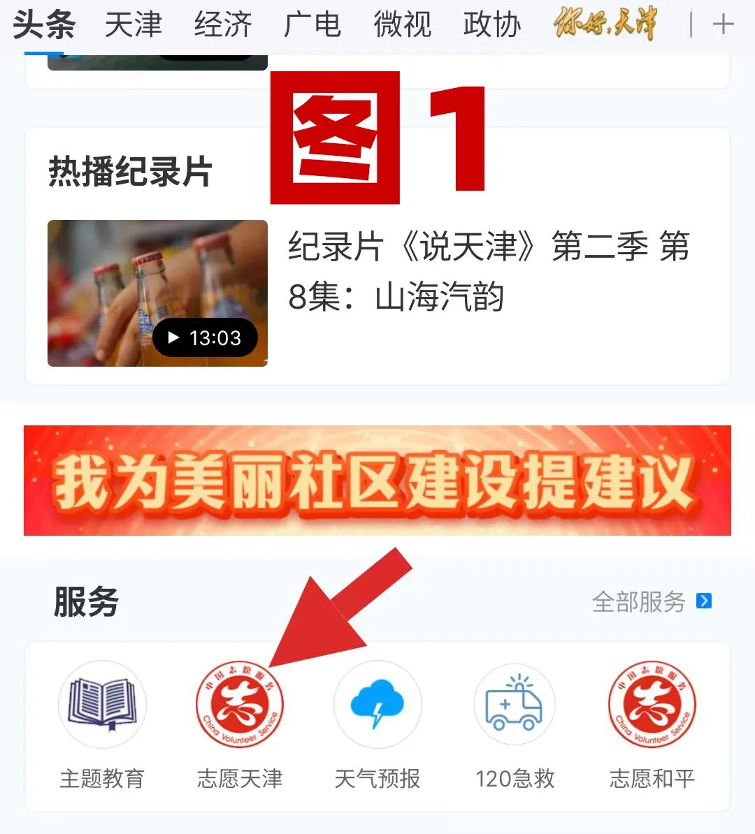 津云首页向下滑,如图1,找到志愿天津这个项目,点进去进行个人信息注册(填写孩子的信息,具体选项参考自己家所在的区,街道信息,自己想志愿服务的项目,自愿填写,这些信息后续都可以修改)成功注册志愿者!(如图2)