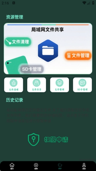 4、在资源管理页面中可以了解局域网文件共享地,同时可以针对SD卡管理。