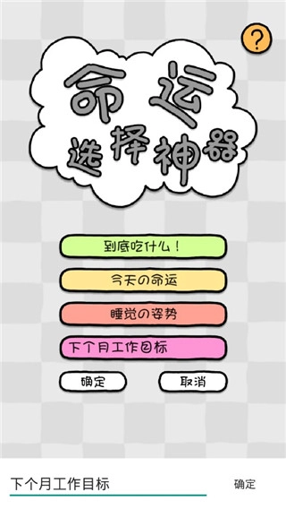 命运选择神器是一款专门为选择困难症人群打造,帮助他们摆脱选择困境的工具。用户既能够选择诸如“今天吃什么”“今日运势”“睡觉姿势”等预设选项转盘,通过随机转动转盘来获取应选的项目;也可以自行创建一个专属转盘,对那些自己拿捏不准的各类选项进行随机抉择——说不定这就是命中注定的选择呢?这款软件采用轻量化设计,占用内存极小,操作简单便捷。要是你想迅速解决眼前难以抉择的问题,不妨试试命运选择神器。