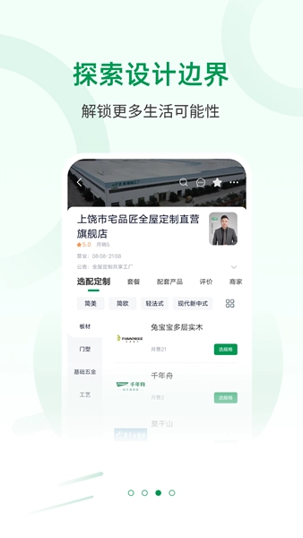 宅品匠支持定制下单全屋定制材料、加工、设计、拆单、安装等服务;