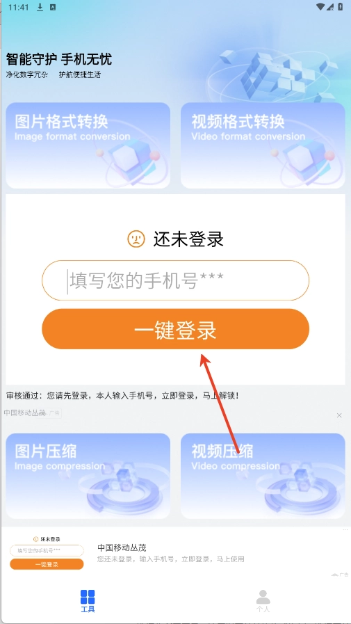 3、输入手机号码,点击一键登录即可