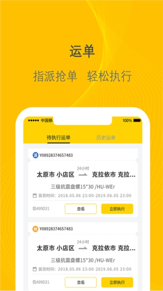 支持用户快速获取运单,指派抢单,轻松执行。