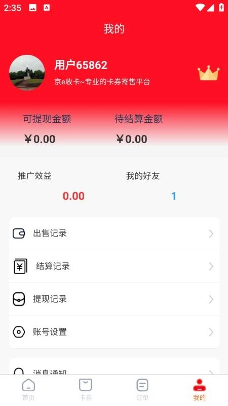 用户随时随地都可以在这里将自己回收出售的卡券收益提现处理,让收益提现更便捷方便。