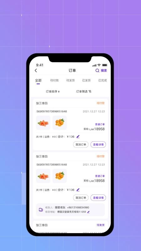 2、进入到订单管理中心可以查看到各种售后订单、发货订单的详情信息;