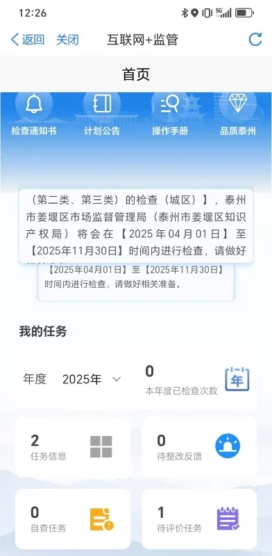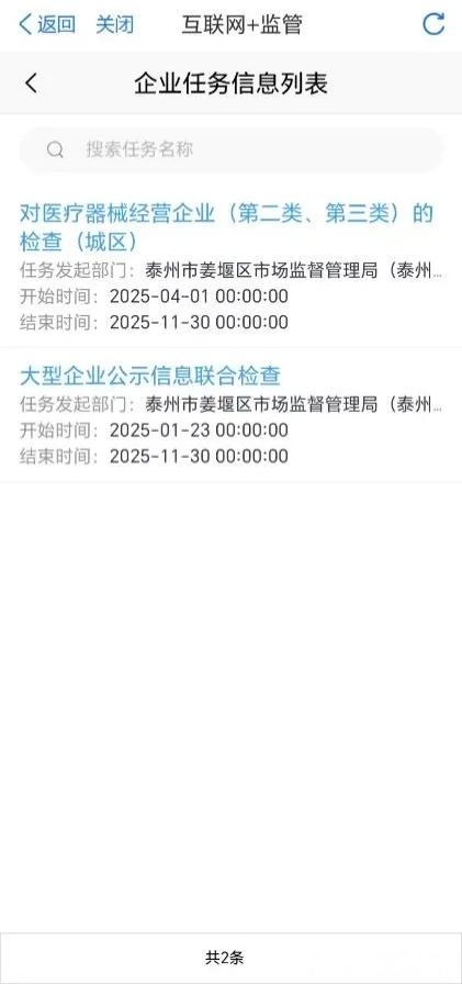 点击“任务信息”可以查看该企业将要接受的可预告的行政检查信息(不可预告不支持查询)。