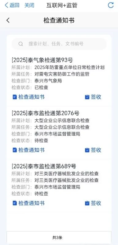 4.查看和签收“行政检查通知书”