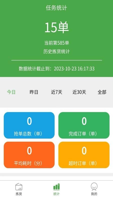 3、查看任务统计数据,可全面了解抢单和完成订单的数量信息;
