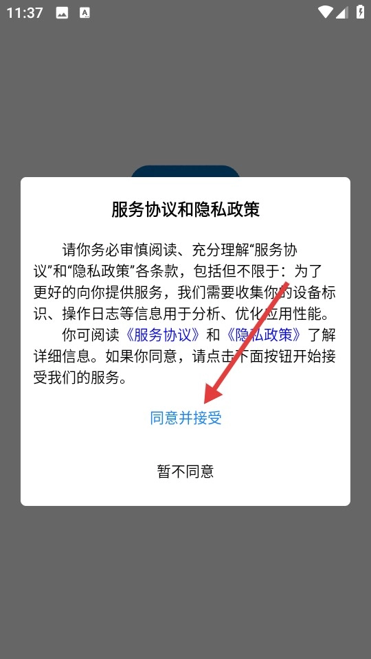 1. 首次打开时,会弹出用户协议与隐私政策界面。用户需仔细阅读该界面内容,点击同意后,方可继续使用。此步骤旨在确保用户知悉并认可平台使用个人信息的相关规则。
