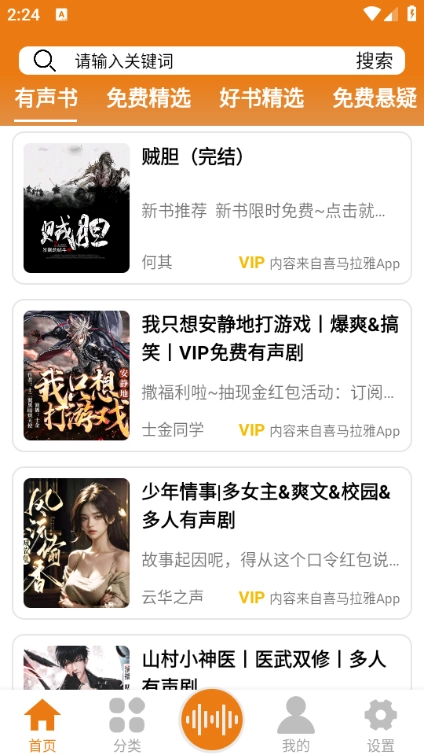 1. 海量听书资源供应,充分契合各类用户的听书需求。