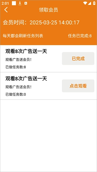 2、然后通过观看广告等任务来免费领取会员