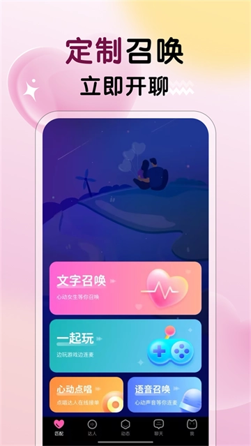 2、定制匹配:可以在应用中华进行召唤匹配,有多种匹配方式,可以快速找到聊天对象;