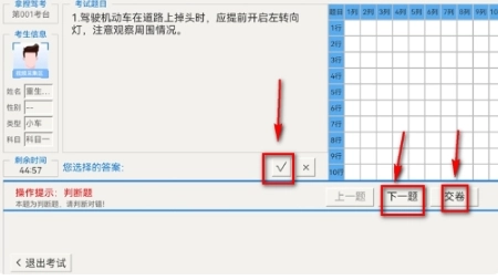 3、答题过程中,认真审题,选择你认为正确的答案后,点击【下一题】继续作答。当完成所有题目后,点击【交卷】按钮。交卷后,系统会自动统计成绩,你可以查看自己的考试成绩