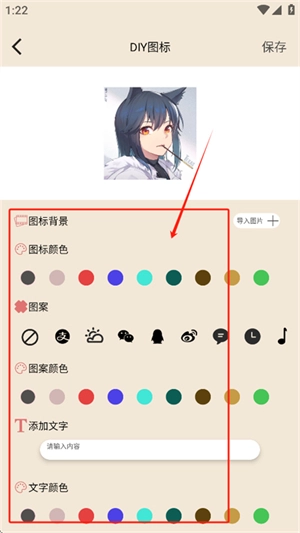5、在图标页面可进行DIY自定义操作。