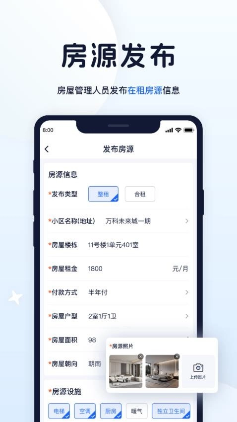 3、填写房源信息,点击确认发布,完成房源发布。