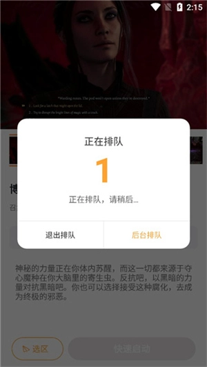 6、点击快速启动,出现排队的弹窗,排队完成后即可快速启动游戏