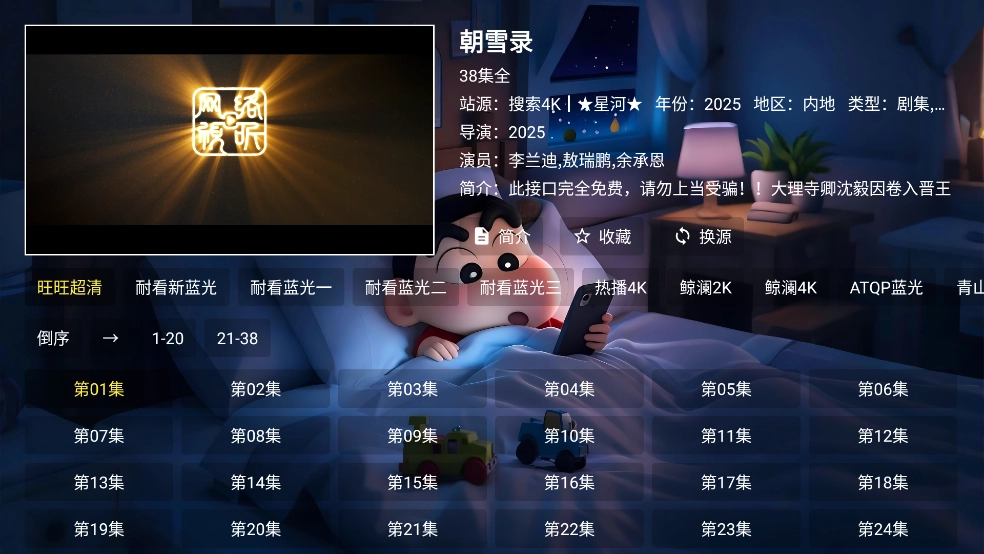 为用户提供了一个大屏追剧的环境,不需要任何付费操作,看到喜欢的剧集内容还可以一键进行收藏,为用户提供了多种清晰度的选择。