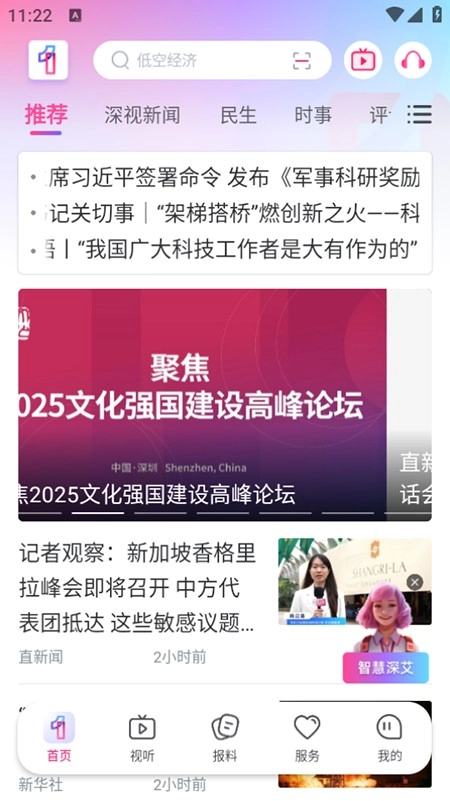 1. 在首页的“推荐”板块,可以查看热点新闻。通过点击“直渐闻”“直财经”等栏目,能够切换内容类型,同时支持视频播放以及图文阅读。