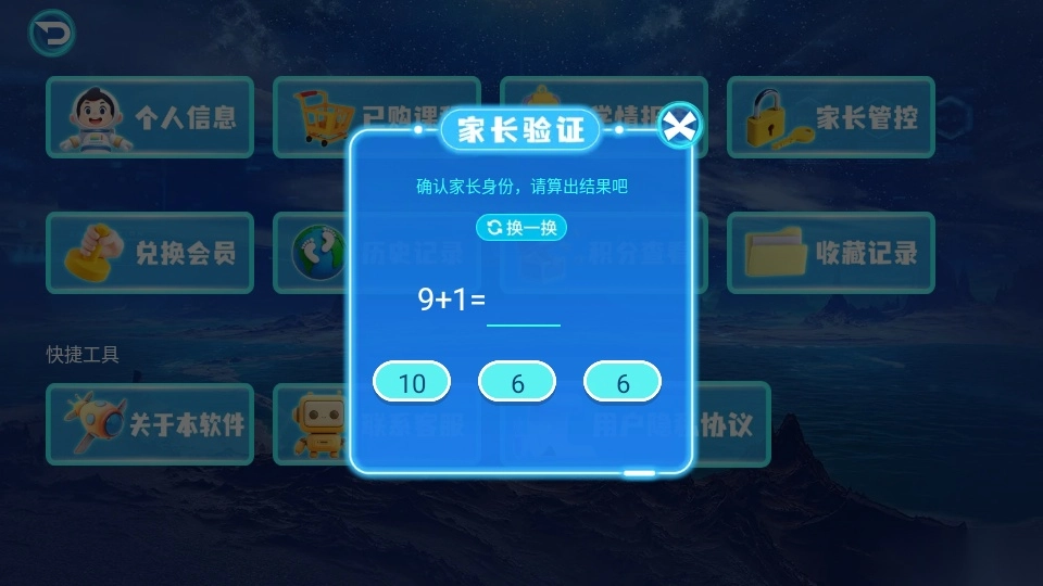 5.在然后需要确认家长身份,输入正确的计算结果就可以进入了