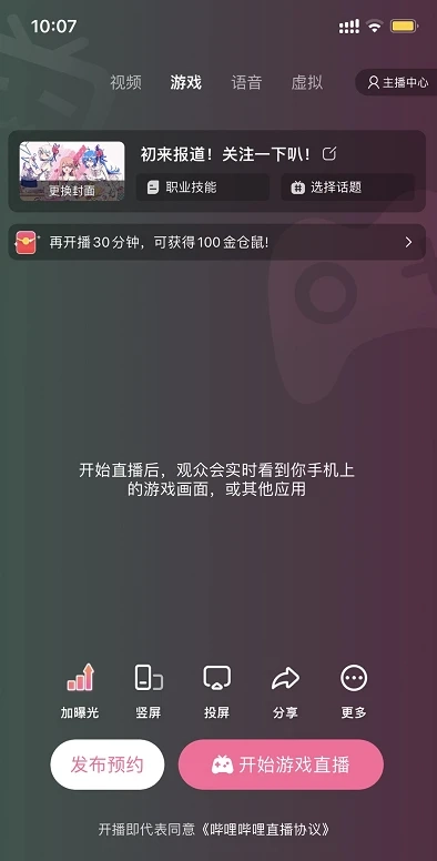 也可直接选择开始游戏直播进行移动端开播
