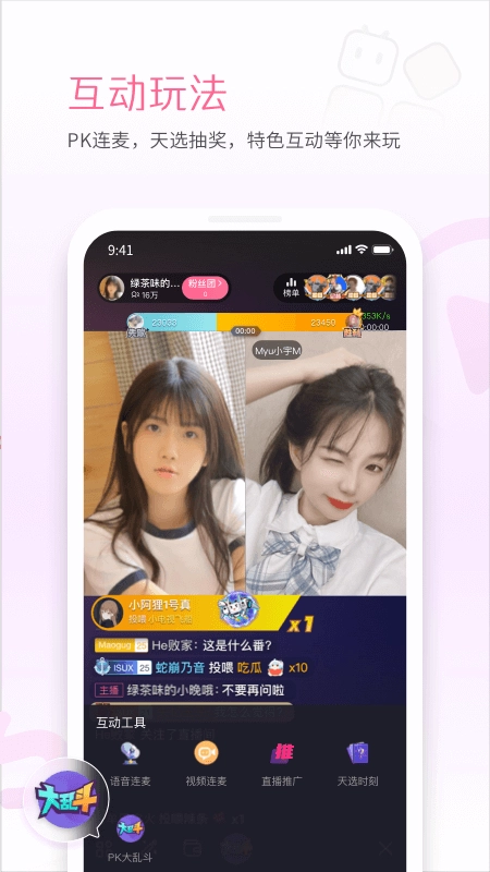 尊享大航海舰队,超强粉丝团,开启你的专享粉丝舰队 ;大乱斗、天选抽奖、语音连麦,一起直播一起high;超强弹幕互动体验、独特礼物效果, 打造属于你的打赏空间。