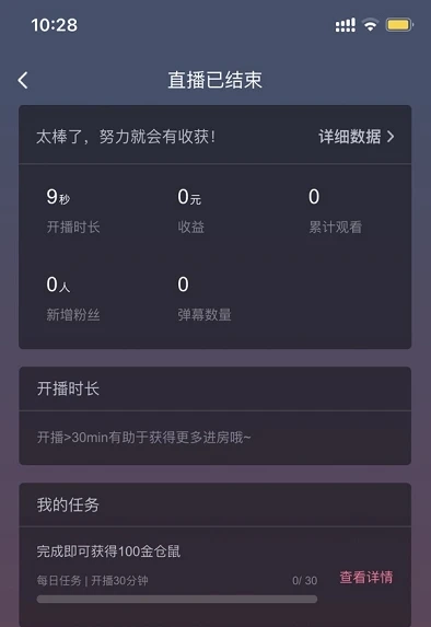 主要以让主播感知本场直播时长/流水/新增粉丝/互动数据/累计观看人数等信息