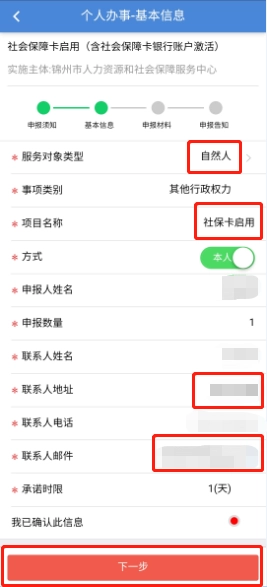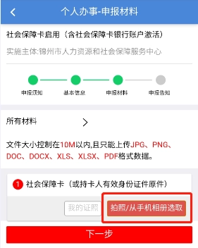 进入页面后根据【收取材料】中的要求准备好相关材料,点击【下一步】