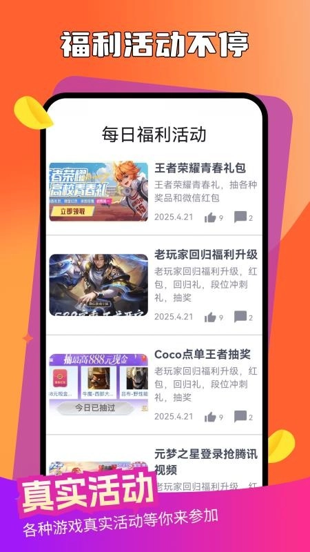 聚合多款游戏或者非活动,真实亲测有效,助你快速获取游戏各种福利。