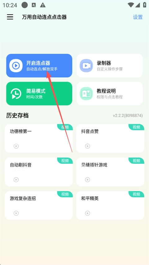 1. 极速自动连点,点击即可启动应用,一键开启自动任务。