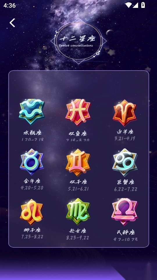 3.之后大家在十二星座界面,任意选择一个“星座”功能按键点击进入