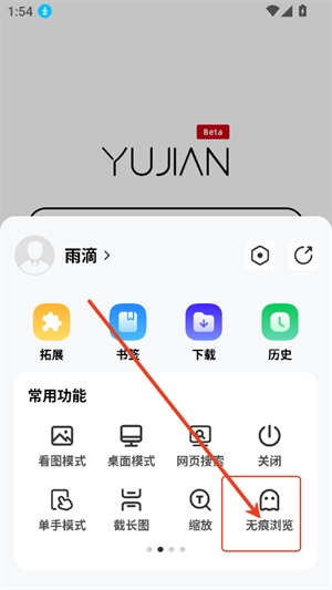 2、点击无痕浏览即可