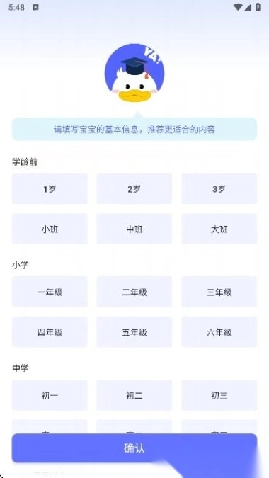 1. 用户打开天才鸭英语后,首先要填写孩子的基本信息。