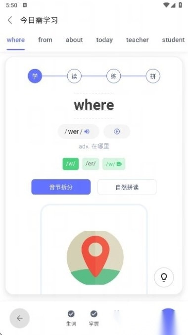 3.通过实用的音标与字母的对照,让单词按音节拆分,您可以更加轻松学会正确的拼读规则呢!