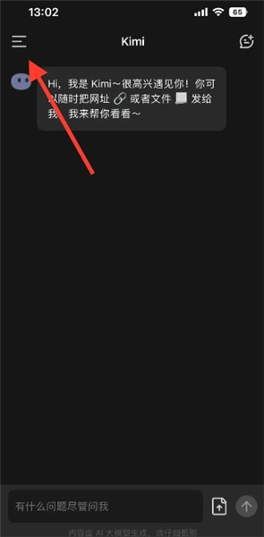1、打开Kimi智能助手,点击页面左上角的三条横线。